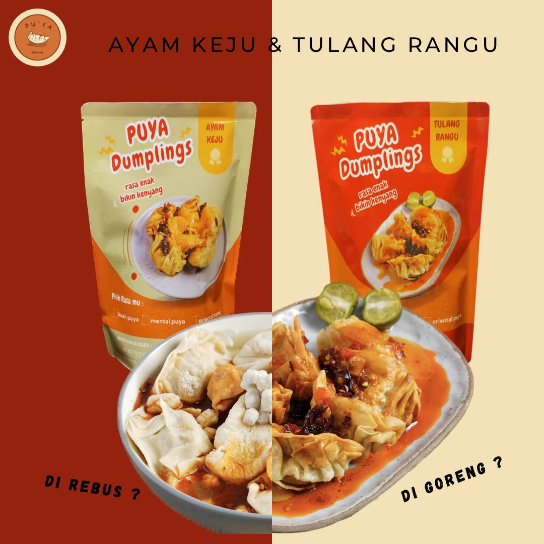 Puya Varian Dumpling Tulang Rangu lebih dari sekadar makanan; ini adalah perpaduan kelezatan dumpling ayam lembut, kerenyahan cikur (pilus), dan tekstur unik cuangki lidah. Kuah hangatnya gurih dengan sentuhan pedas, atau pilih varian goreng renyah dengan saus oriental, mentai, atau kuah yang menggoda. Cocok sebagai santapan istimewa di berbagai suasana, memberikan kehangatan dan rasa tak terlupakan. Tulang rangu menambah tekstur renyah, rasa gurih, serta manfaat kolagen.